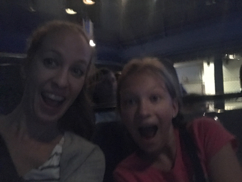 Friday took us to EPCOT. Just like last time we went, we did the princess breakfast at the Akershuh Royal Banquet Hall in Norway. Clara thought it was great that the princesses came right to your table to personally greet you. She was a bit hesitant to jump into the princess processional, but ultimately joined up with them. She and I had booked a FastPass for the Frozen Ever After ride near there, so we were off to do that while Dana and Brynn met up with Christel and John for their Soarin' ride. I think that ride ended up to be a favorite for all of them. After Clara's and my ride, we shopped a little bit which is when Clara purchased Sven and some lefse. Yes, we traveled all the way to Florida for some lefse. Haha. It was the real deal, though, with butter and cinnamon and sugar and all. Dana, Brynn and John went on more rides while Christel, Clara and I found Mickey and Minnie and just hung out a bit. Soon it was time for our dinner reservation at the German restaurant, Biergarten. We had a front row seat to the entertainment while we enjoyed the schnitzel, beer cheese soup and more German goodies. Dana and Clara headed back to the resort while Brynn, Christel, John and I finished up in EPCOT with a ride or two and then headed over to Hollywood Studios where I almost died on the Tower of Terror. I had not been on it before, but it's Christel's fav ride. She was trying to explain to Brynn about what to expect while I didn't know myself either. After I realized that I had successfully lived through the experience and we were walking to the next ride, I started laughing hysterically (nervous laughter?) as I realized the pic the ride captured of us was the most generous possible (I merely look like I'm clutching my pearls) and least embarrassing. Had it caught more of the ride, it would have shown me clutched to the side of the death trap we were strapped into with my eyes shut wondering when it was going to end (the ride, not my life...I was hoping). The gist of the ride, if you've not been, was a broken down elevator in this old hotel (Hollywood Hotel). So the contraption you're sitting in ("the elevator") brings you up the very top where it opens out so you can see that you're able to view out over the entire Hollywood Studios park. Just when you're realizing how stinking high up you are, it closes, goes dark and you plunge down to the bottom...and then up and down a couple more times. Brynn managed okay with the actual ride portion, but very much disliked the story of the ride which seemed to be based on The Twilight Zone series. So, she and I are both scarred from that ride, just for different reasons. I felt really badly, though, as I didn't realize she would be that scared of it, not knowing what it was like.