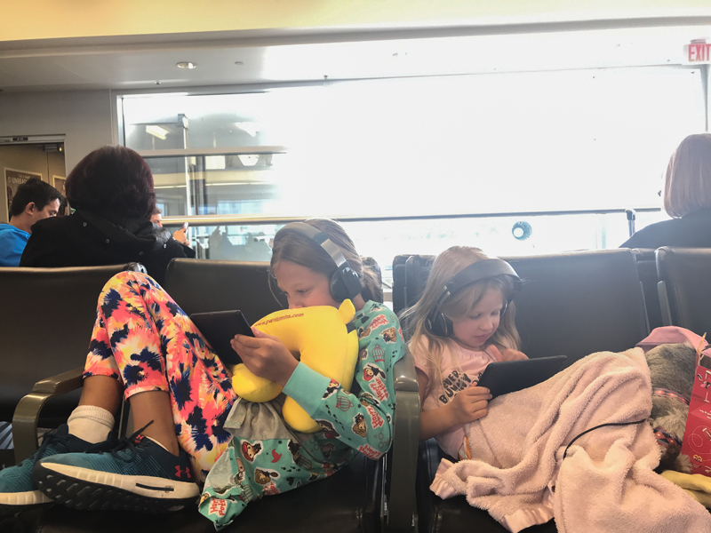 Our flight departed at 7:00 AM on Wednesday the 9th, so we all rousted around 5:00 AM to get out the door. That was no problem for me since that is normally the time I get up on a weekday, but some others were a bit slower moving. But, we were off on our first flight with less than an hour layover in Minneapolis where we met up with auntie Christel and uncle John for smooth sailing the rest of the way to Florida. Clara did really well on the plane and was more excited than scared for her first-ever flight. She was able to catch the new Aladdin movie en route which seemed like good timing for meeting the characters at Disney. Clara and I sat together and Brynn with Dana. I think Brynn watched some movies and Dana listened to some podcasts.