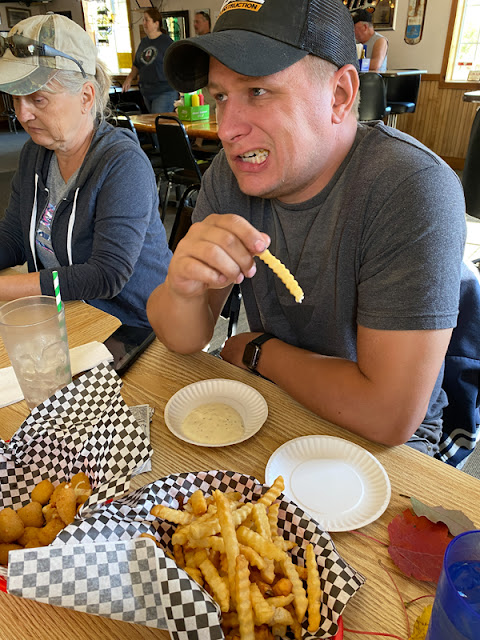Spooky season is upon us! Last year I had wanted to check out the haunted farm - Dana has fixed chainsaws and such for the guy who runs it - but I couldn't get anyone to go with me. This year my parents said they would accompany me. Mom ended up staying behind to hang out with the girls, so it was just Dad and me. We had a frightfully delightful time. Thanks for going with me, Dad!